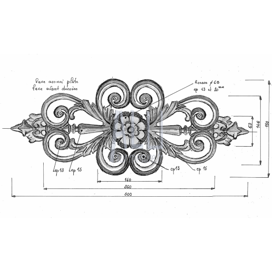 Cette palmette décorera vos réalisations de portails ou portes en aluminium. Peut également être posée en applique.